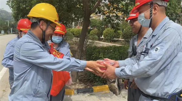 炎炎夏日,驕陽似火,一線職工在檢修現場揮汗如雨,后勤保障工作也是一場硬仗。在繁忙有序的檢修一線后方,有一股溫暖、堅定的力量,一直在背后默默的付出,支持著檢修工作順利進行。他們就是后勤保障工作者,檢修一線辛苦,后勤服務同樣任務艱巨,他們在幕后與檢修人員并肩作戰,把力量裝進職工碗里,把關愛送到大家心中。他們無微不至的關愛讓檢修人員切身感受到了陜化大家庭的關懷和溫暖。一分清涼,一聲問候,一片關愛,檢修慰問物品一箱箱送達現場,他們的衣襟早已濕透,傳遞的確是真情和關愛。在這里我們向所有為檢修工作辛勤付出的后勤人員道一聲:“你們辛苦了!”(電儀分廠 孫園園)