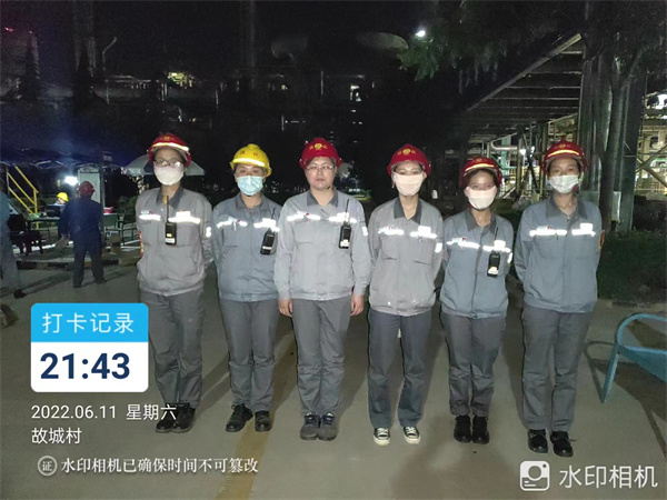 夜色降臨,直至凈化工段檢修現場最后一個受限空間分析結束,質檢女工們才收拾好安全分析裝備,整齊列隊拍照,21點43分,她們一天的檢修分析任務圓滿結束。雖然檢修分析任務緊,戰線長,但質檢女工們克服困難,迎難而上,她們用自己的行動詮釋著一名質檢員的責任,為大檢修保駕護航。(質量計量中心 孟媚)